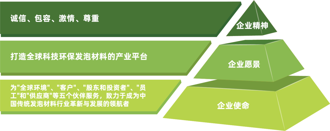 潤陽科技基于“企業使命”、“企業愿景”和“企業精神”等理念體系,以技術先行重點產出環保價值。目標是集合企業成員力量共同應對環境問題,積極為全球市場提供安全、健康的環保發泡材料,從而成為具有標志性的可持續發展型企業。